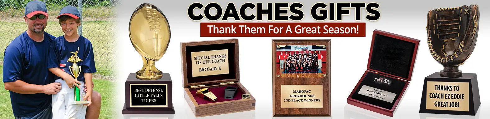 Your coach or manager is your rock, working and hustling to make your team, your league or you the individual, the best it can be. Show your appreciation and reward them with great awards from Crown Trophy. Crown Trophy has hundreds of Coach awards and gifts guaranteed to bring a smile, all at budget-friendly prices your group can afford. Crown Trophy has been the leader for coach and manager awards for over 45 years, so please take advantage of our huge selection of plaques, trophies, crystals, ball trophies, desk accessories and so much more. Making your coach feel special is key and high-quality engraving personalizes your gift and many coaches gifts can be customized with your logo or event information. Visit the experts at your neighborhood Crown Trophy store today and let your coach or teacher how important they are.