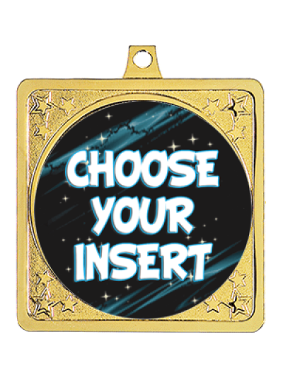 Square Crafter Insert Medal Features A Starry Design Surrounding A Round Insert Area.